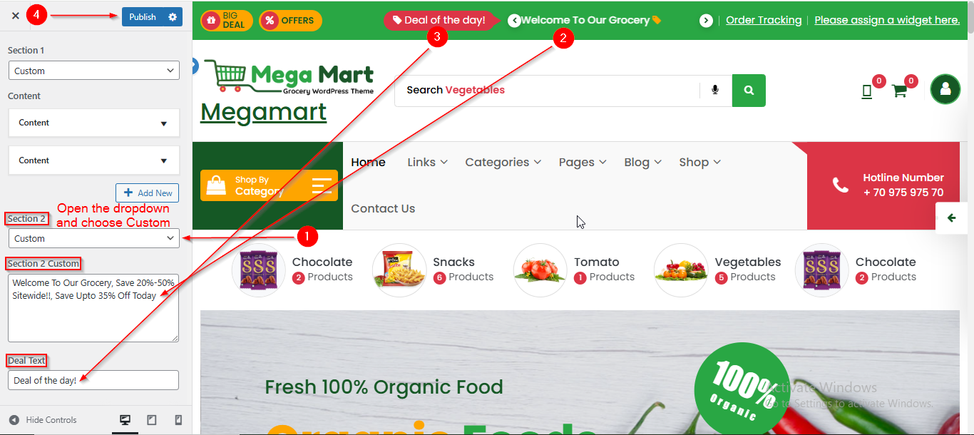 Note : If you choose Widget from the Section 1 dropdown instead, you can add any widget of your choice in that area.