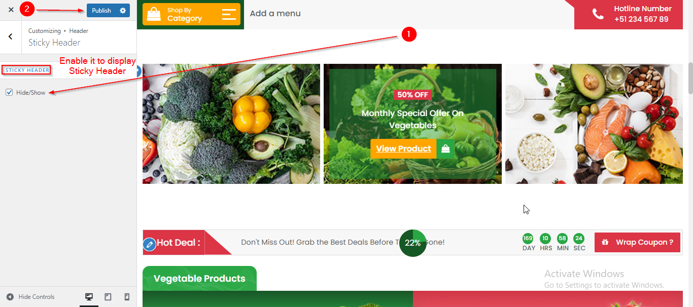 - From here you can manage the Sticky Header by Enabling or Disabling the checkbox