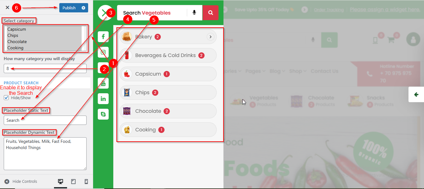 - From the PRODUCT SEARCH Section , you can manage the Product search text and Product Search Slider by using commas after each sentence or word from Placeholder Dynamic Text text field.