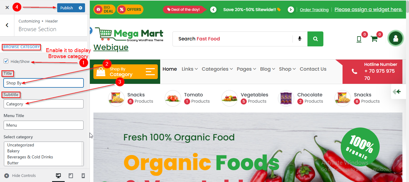 To manage the Browse Category Title and Subtitle in Header Section, follow these steps: