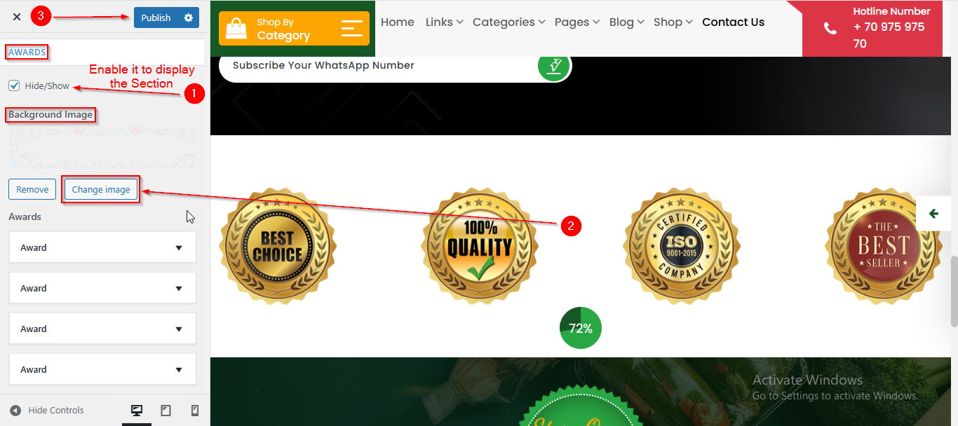 To manage the Background Image in Awards Section, follow these steps: