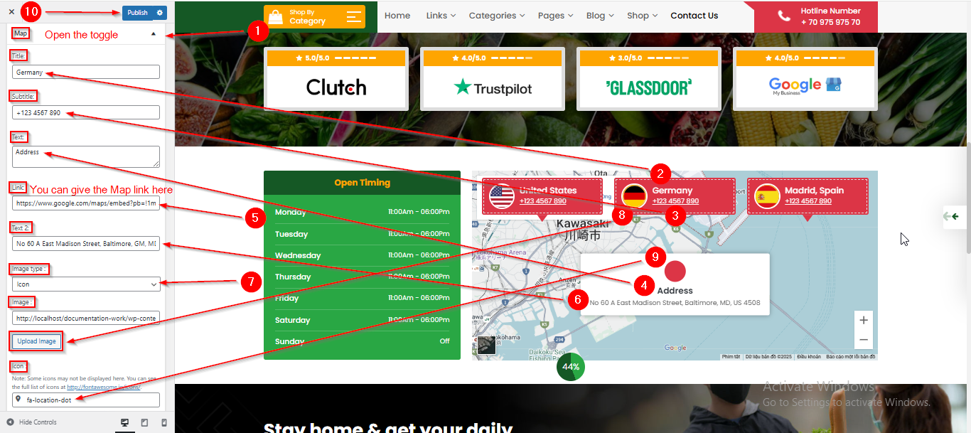(6) How to manage the Office Timing Content in Contact Map Section ?