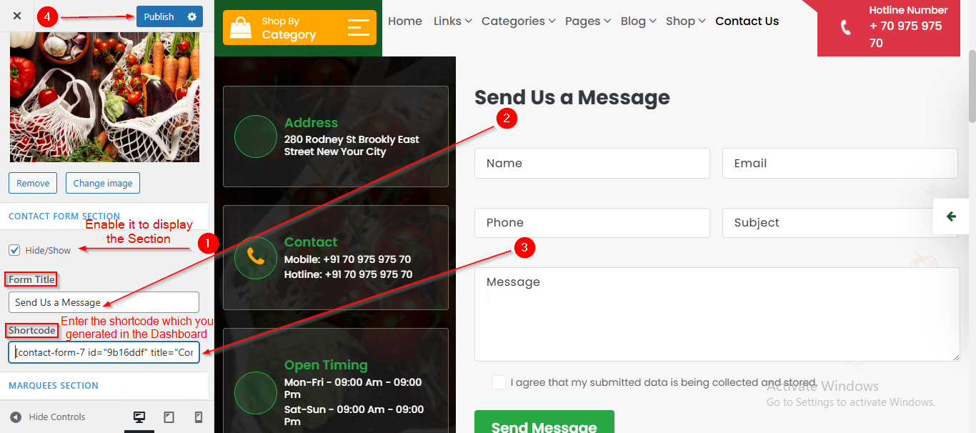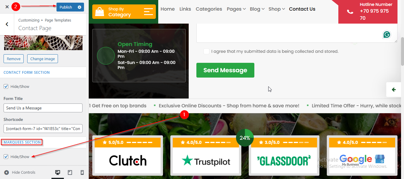 To manage the Marquee in Contact Form Section, follow these steps: