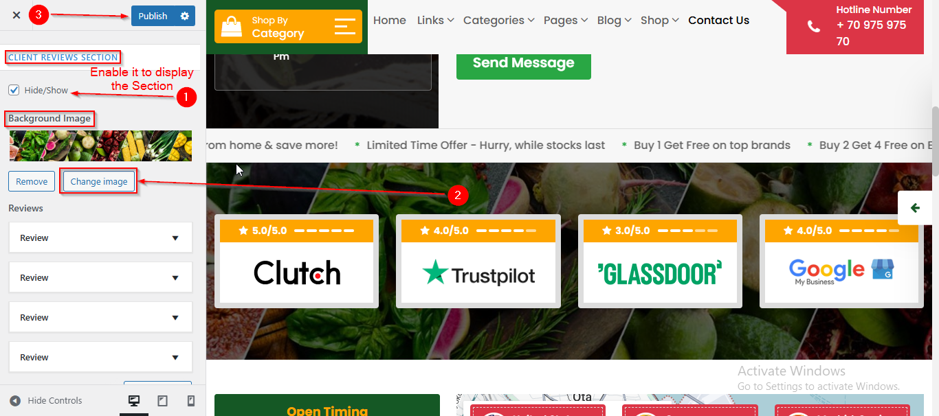 To manage the Client Review Background Image in Client Reviews Section, follow these steps: