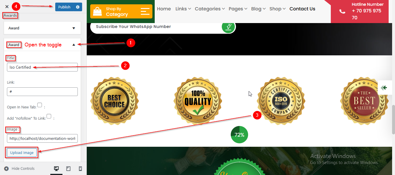 - Open the toggle to manage the Award content such as Title and Image.