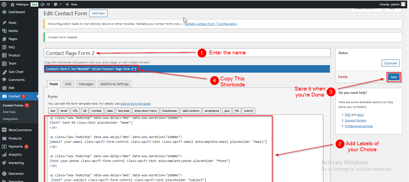Creating Contact Form and Generating Shortcode