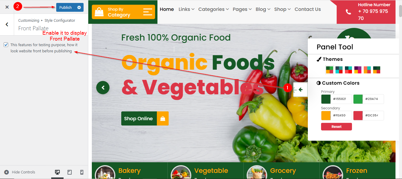 - On the Customizer page, go to Style Configurator > Front Pallate.