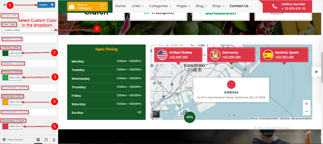- Custom Color: Create your own color scheme by selecting the Primary and Secondary colors.