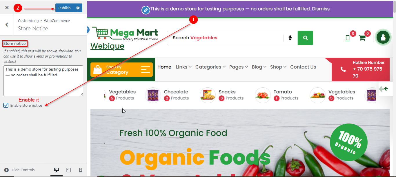 Note: Ensure the checkbox labeled Enable store notice is checked if you want to display the Store Notice.