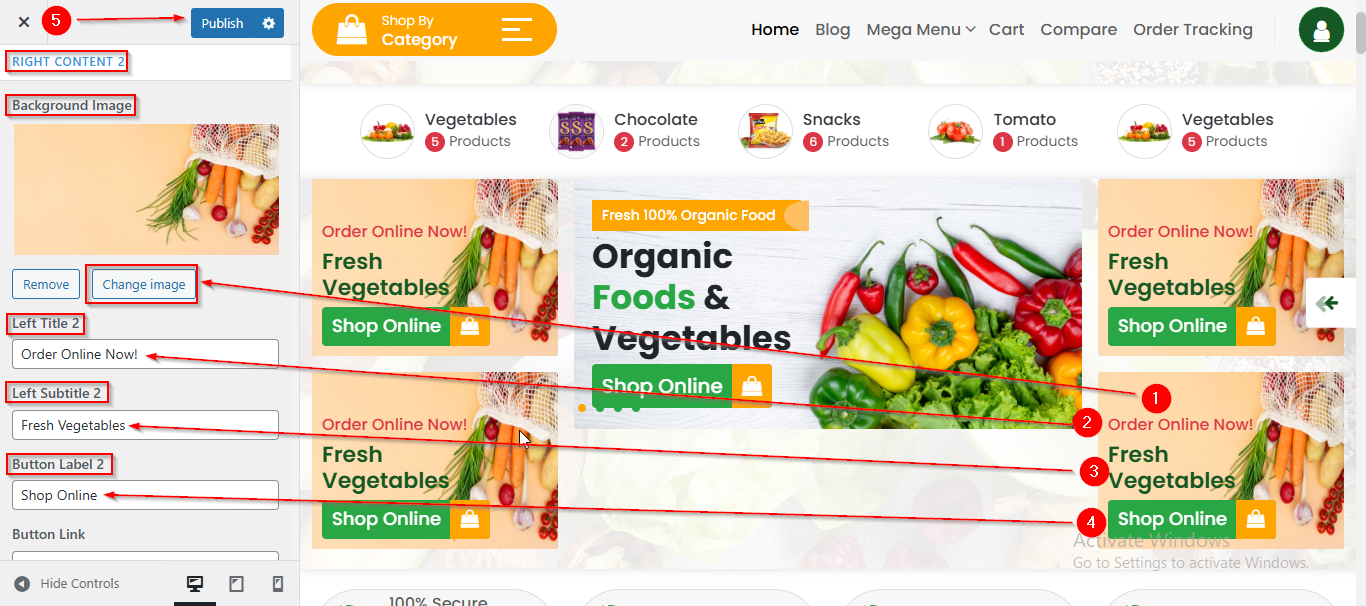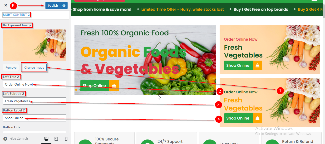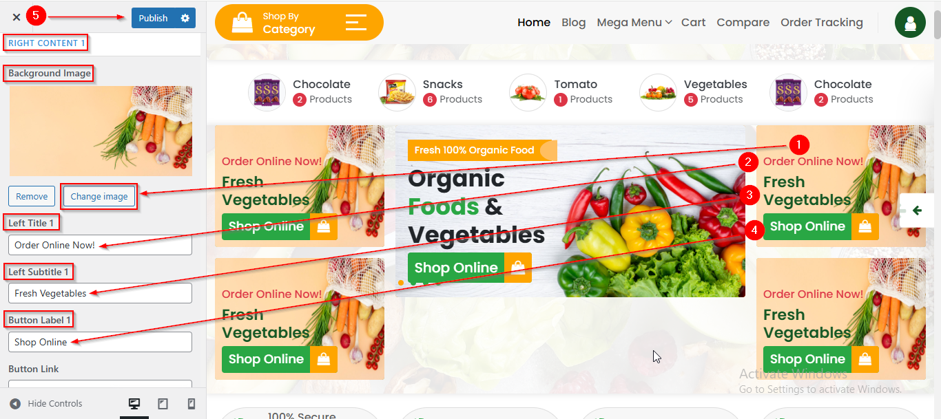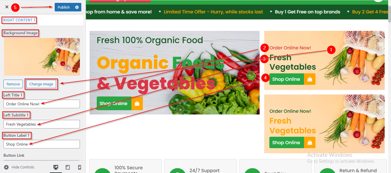 - From here you can manage the Right 1 Content such as Background Image , Left Title , Left Subtitle and Button Label.