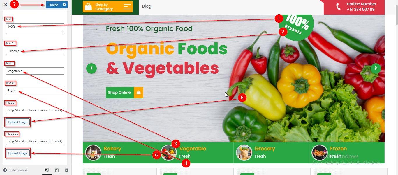 To manage the Text , Text 2 , Text 3 , Text 4 and Image in Slider Section, follow these steps: