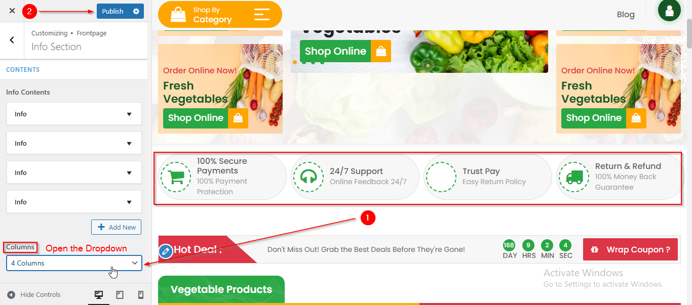 In this article, you’ll learn how to set up and customize the Info Section of the Mega Mart Pro theme, This guide will help you configure these settings to align with your site’s branding and functionality needs.