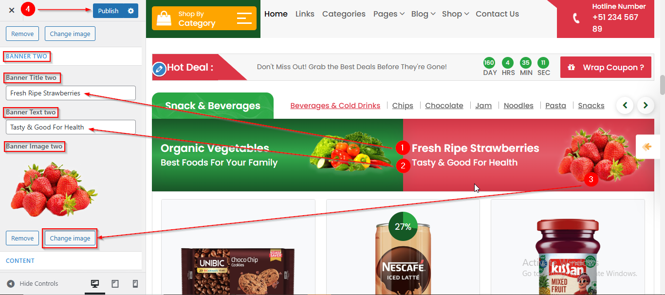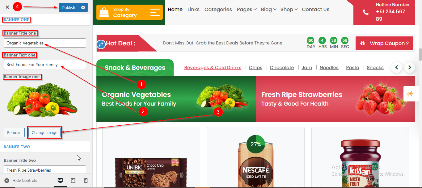 - From here you can manage the Banner One Content such as Title , Text and Image.
