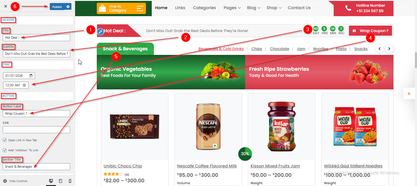 - After reaching here you can manage the Title , Subtitle , Time , Button and Section title.