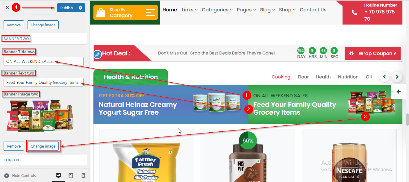 - From here you can manage the Banner Two Content such as Title , Text and Image.