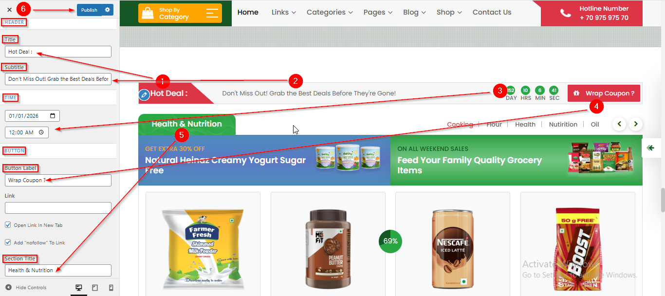 - After reaching here you can manage the Title , Subtitle , Time , Button and Section title.