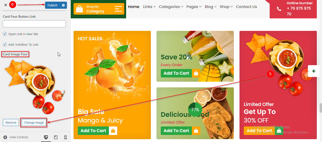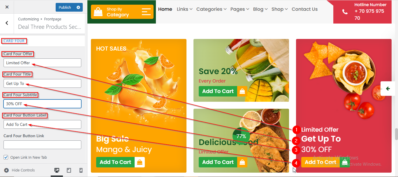 4. From the CARD FOUR , you can manage the Offer , Title , Subtitle and Button.