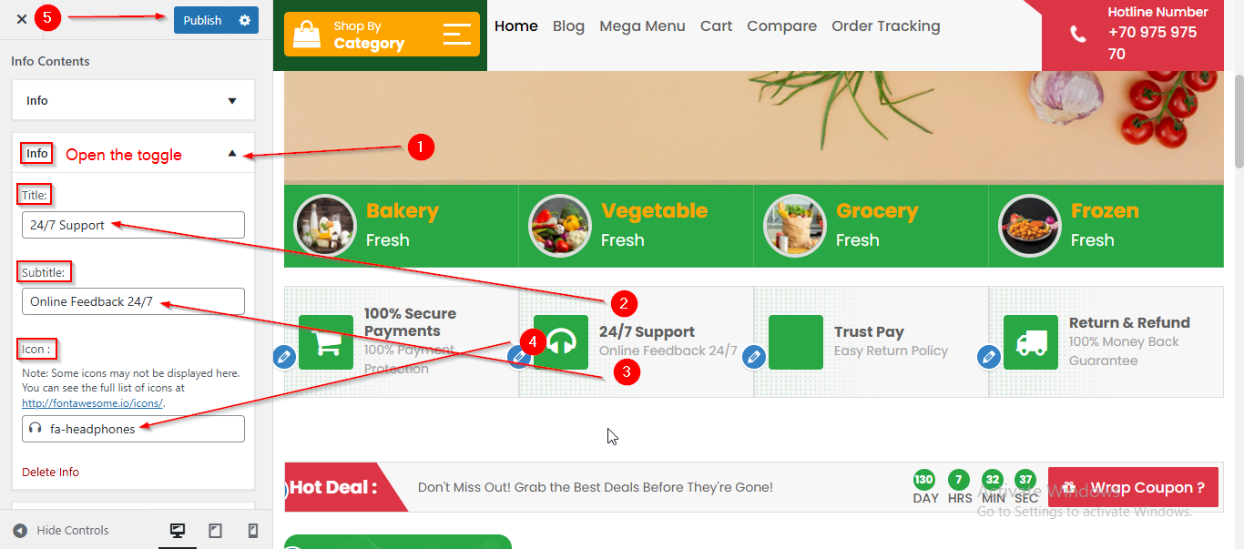 In this article, you’ll learn how to set up and customize the Info Section of the Mega Mart Lite theme, This guide will help you configure these settings to align with your site’s branding and functionality needs.