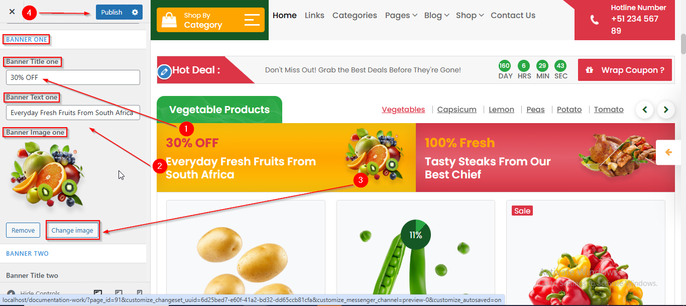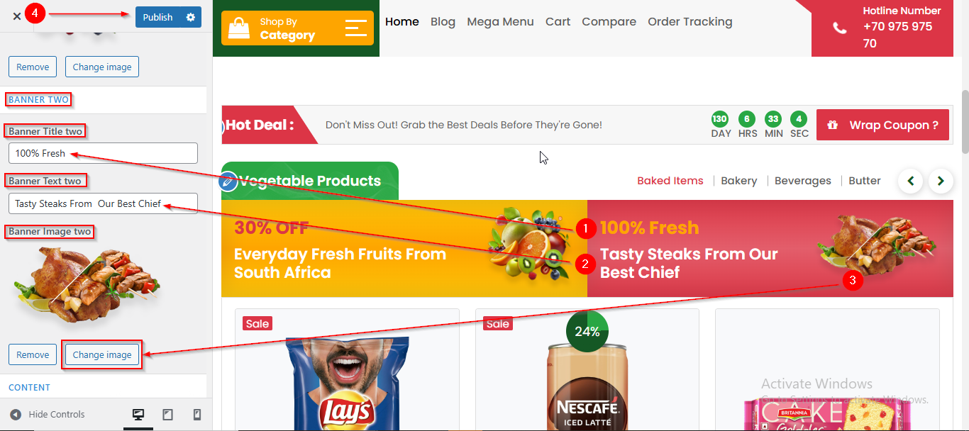 - From here you can manage the Banner One Content such as Title , Text and Image.