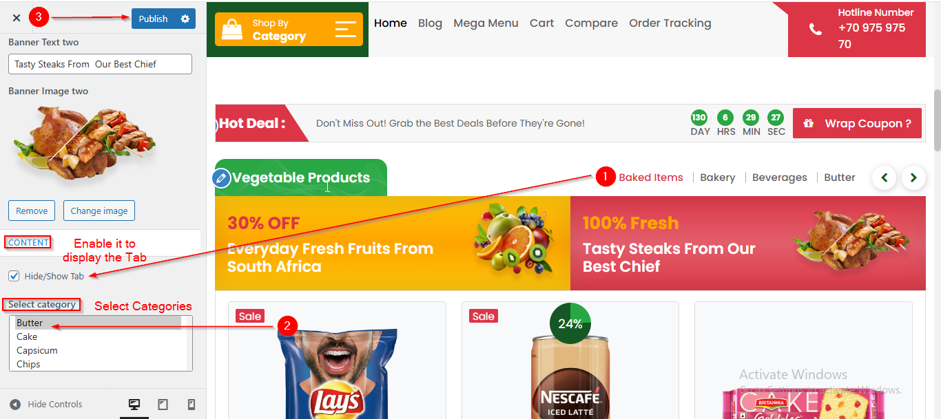 To manage the Filter Tab and Select Category in Product One Section, follow these steps: