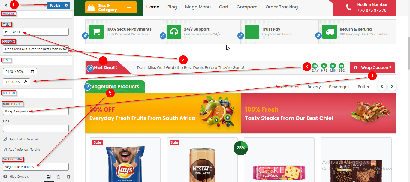 - After reaching here you can manage the Title , Subtitle , Time , Button and Section title.