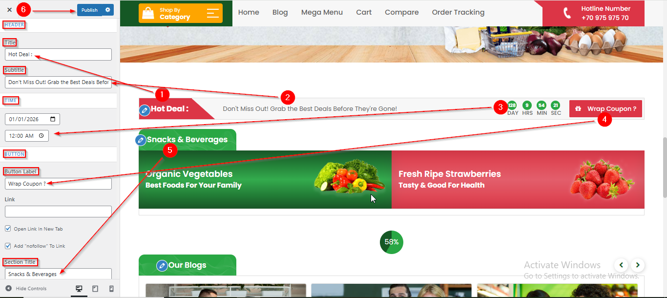 - After reaching here you can manage the Title , Subtitle , Time , Button and Section title.