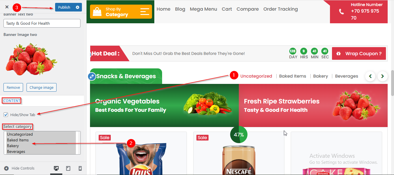 To manage the Filter Tab and Select Category in Product Two Section, follow these steps: