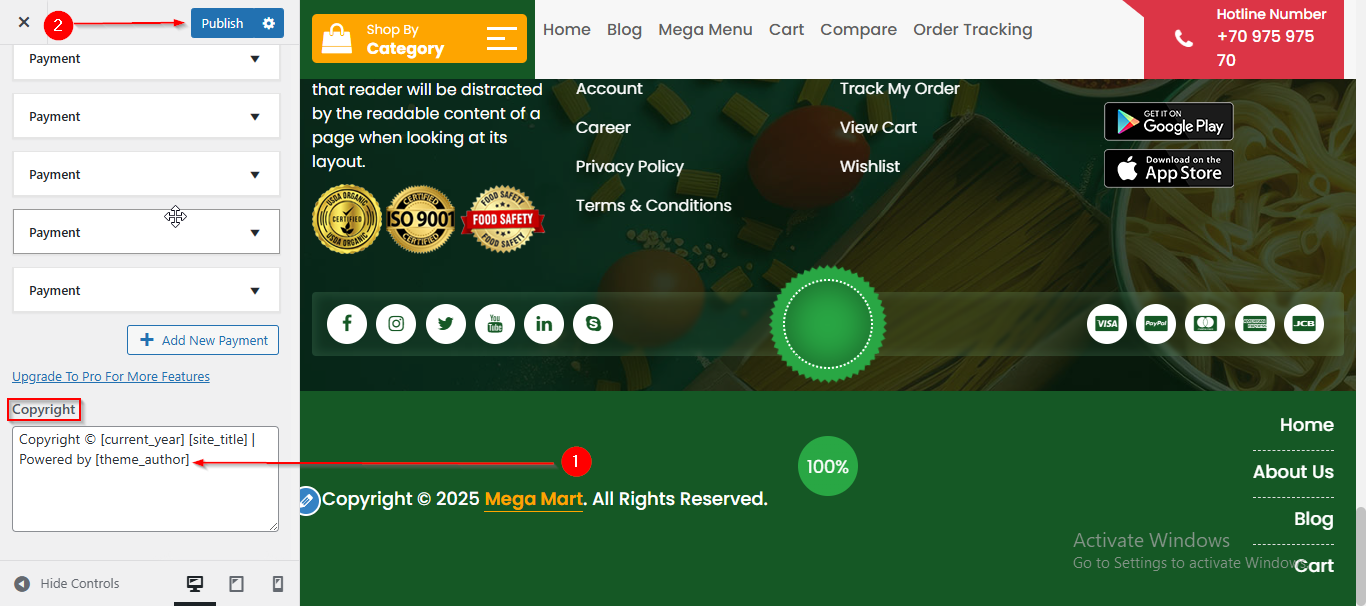 In this article, you’ll learn how to set up and customize the Footer of the Mega Mart Lite theme, This guide will help you configure these settings to align with your site’s branding and functionality needs.