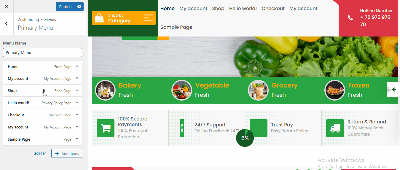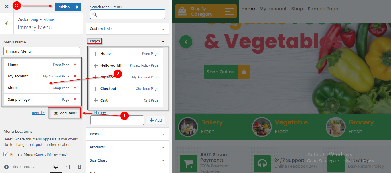 Note: Ensure you have checked the Primary Menu option. If you create your menu without enabling this checkbox, the menu will not appear in the header section.