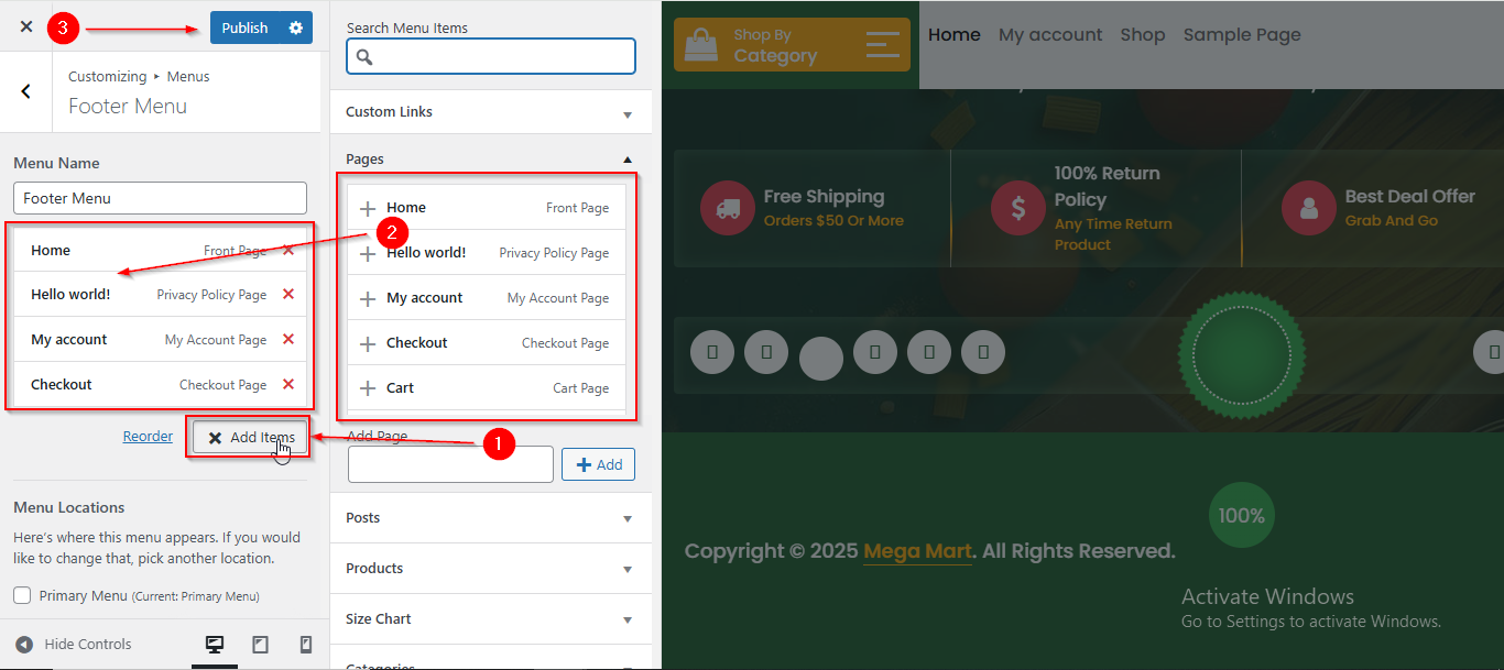 In this article, you’ll learn how to set up and customize the Menu of the Mega Mart Pro theme, This guide will help you configure these settings to align with your site’s branding and functionality needs.