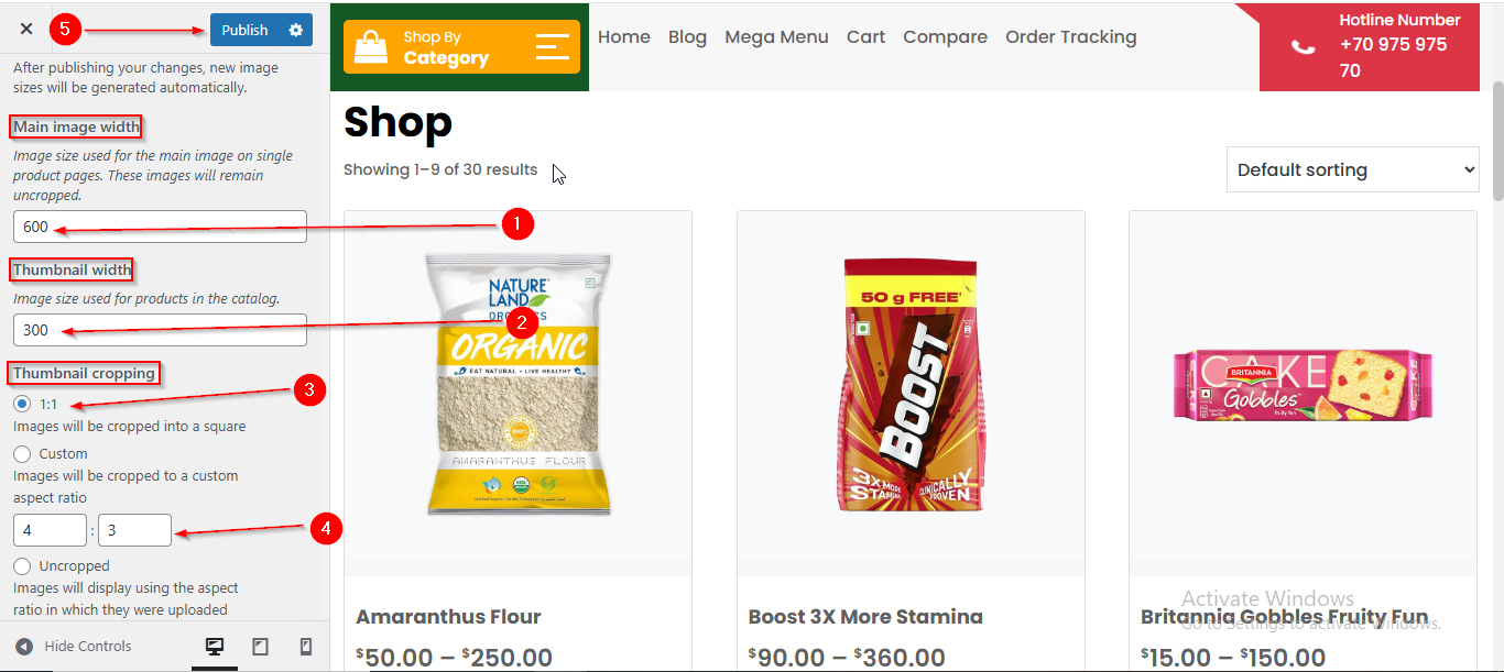 - Here, you can manage various Product Images settings such as main image width, thumbnail width, and thumbnail cropping.