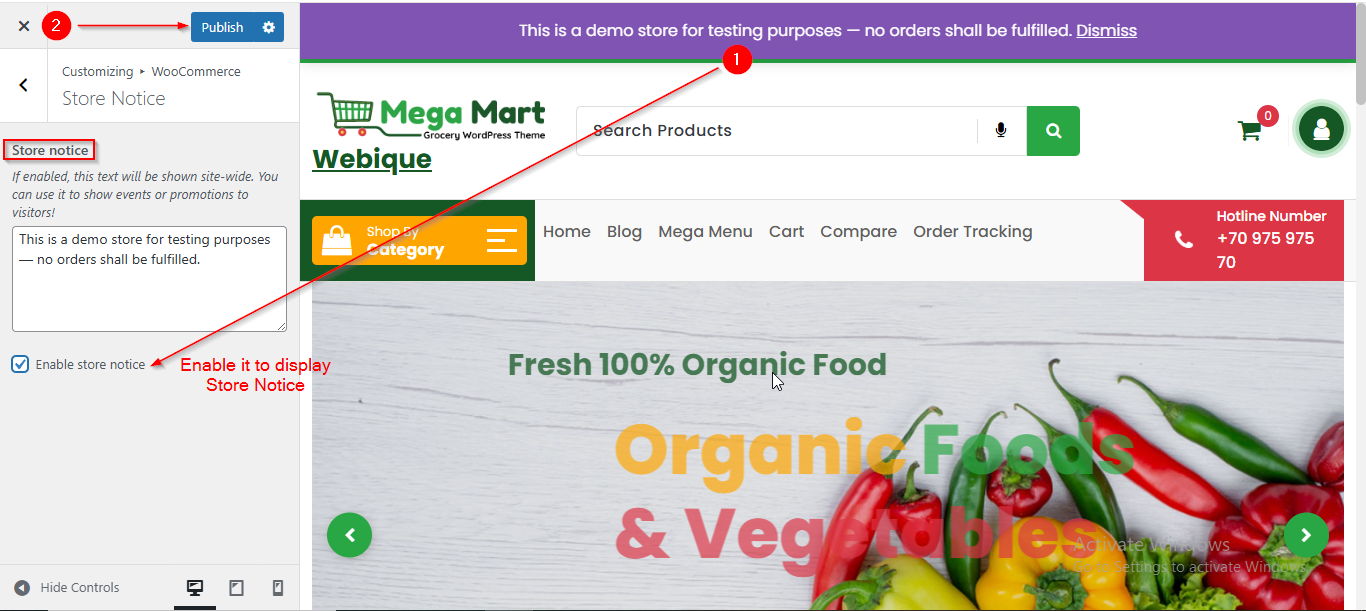 Note: Ensure the checkbox labeled Enable store notice is checked if you want to display the Store Notice.