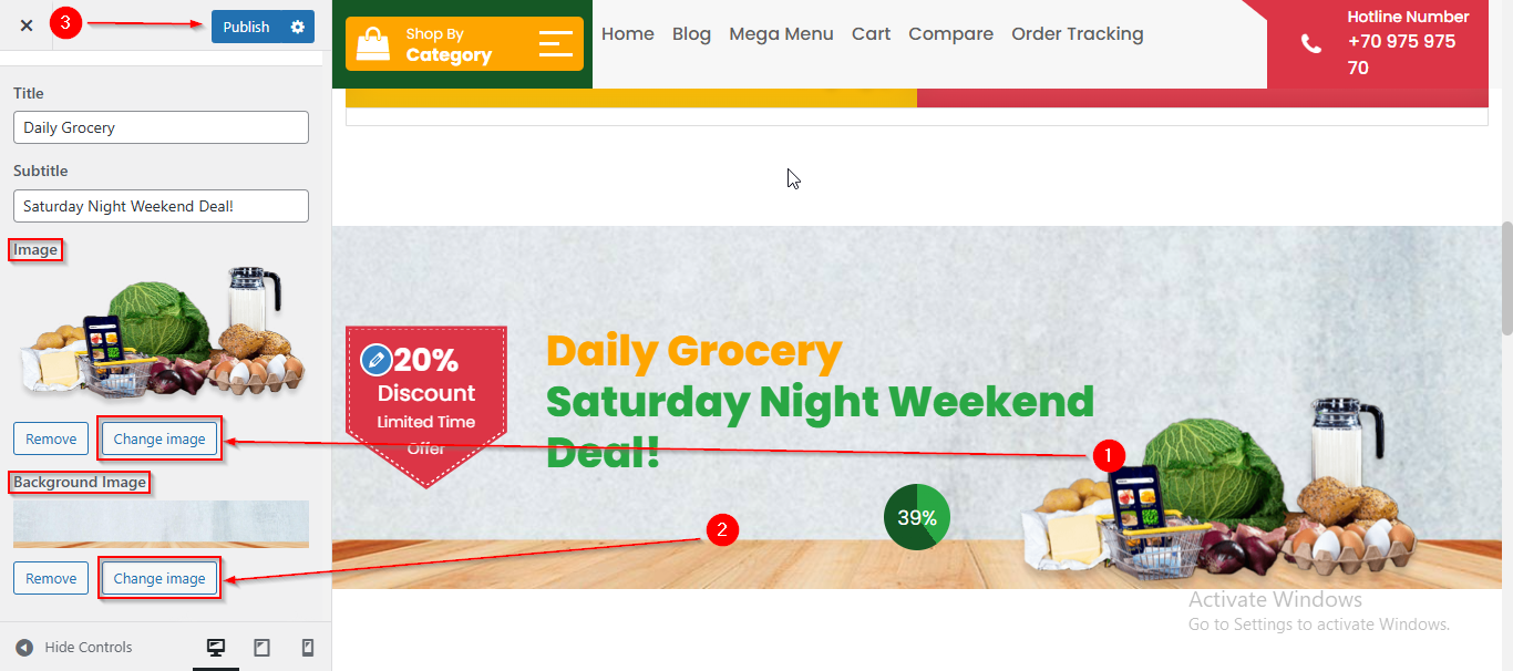 To manage the Image and Background Image in the Banner Section , follow these steps:
